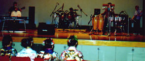 晴れ着姿のお嬢さん達の前で少しはずかしい様子です 一時間を気持ち良く聴いていただきましたありがとうございます。 | ||||
